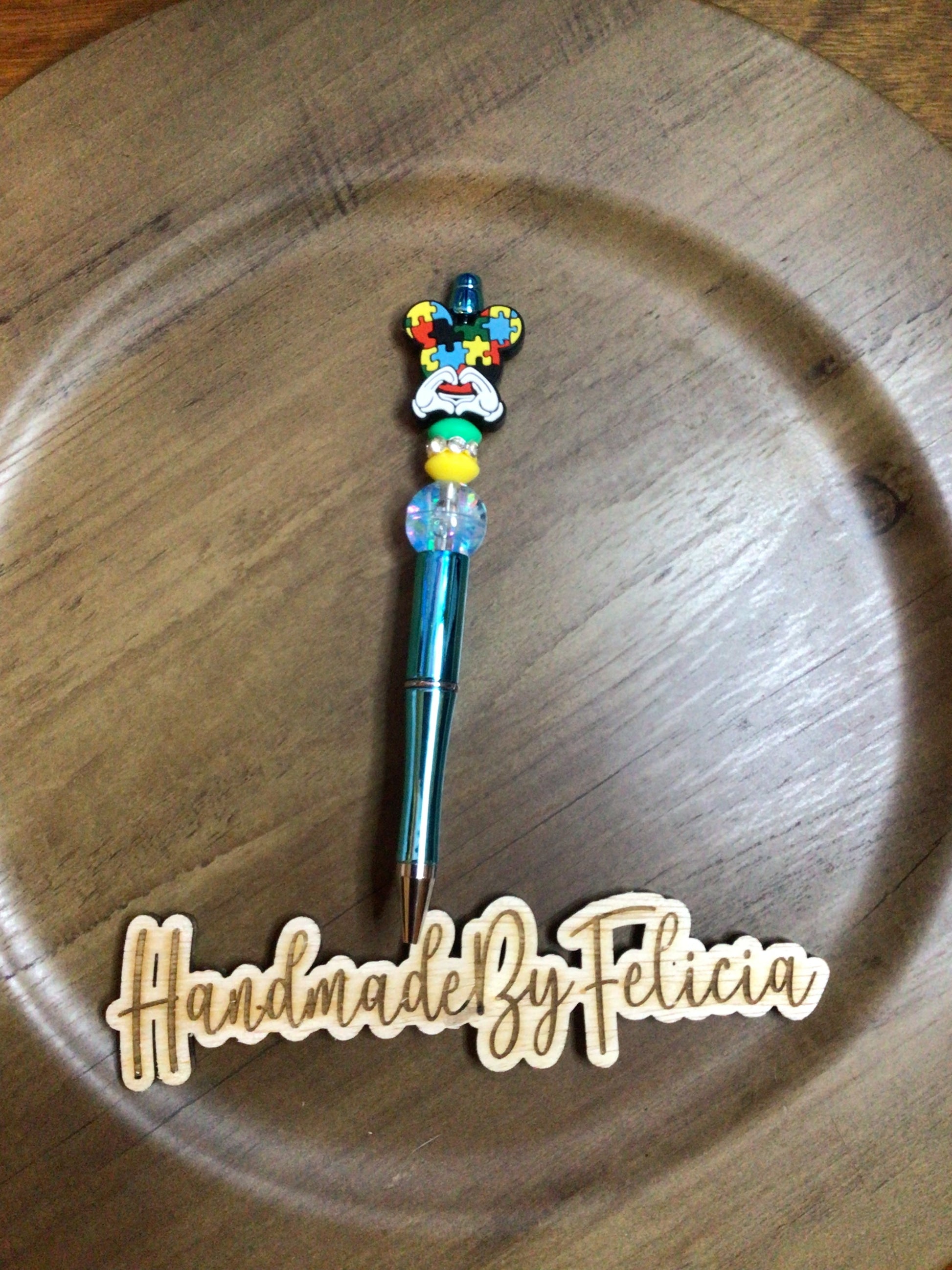 Autism love mouse glitter bead pen