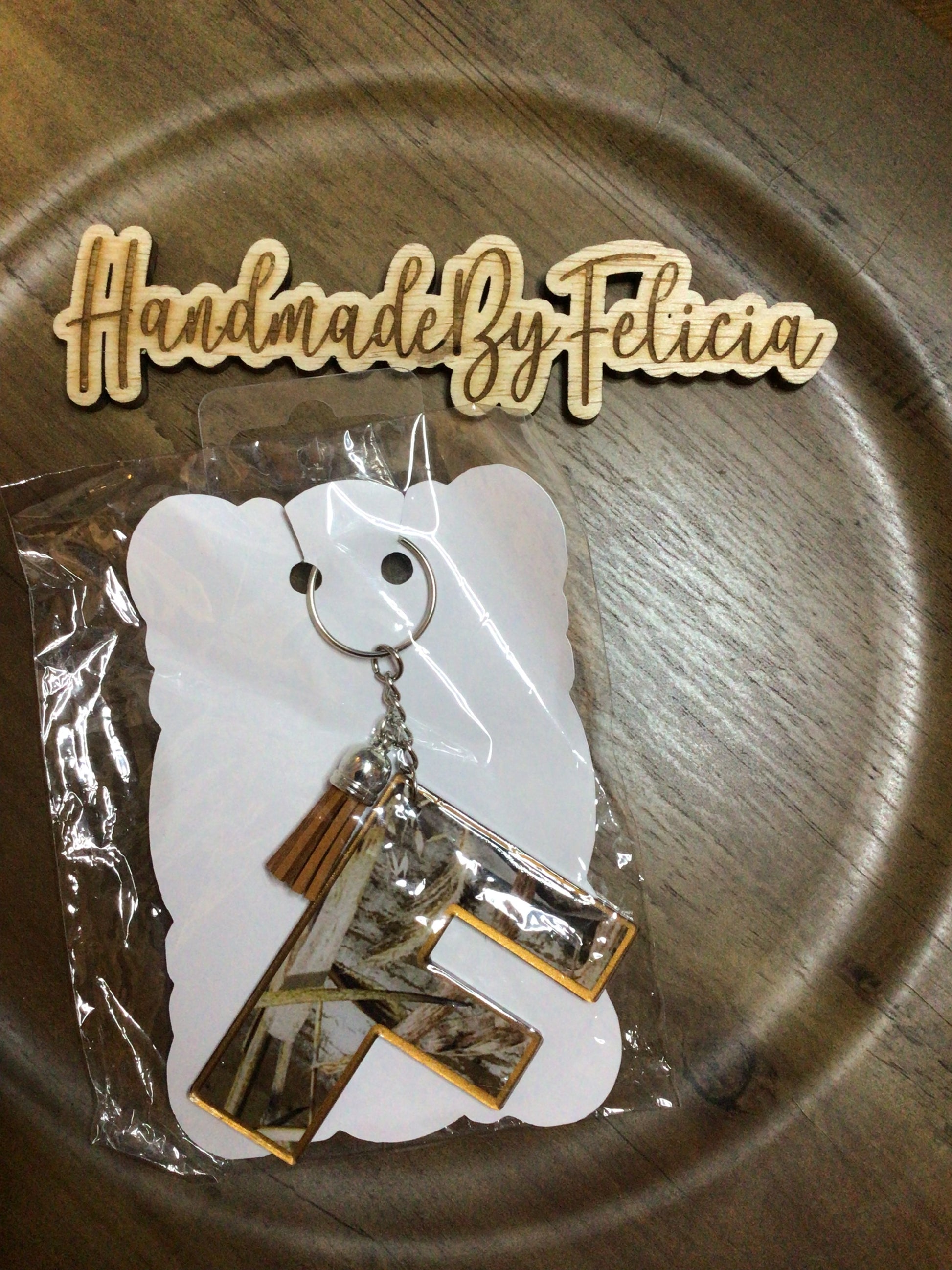 Camo letter F acrylic keychain