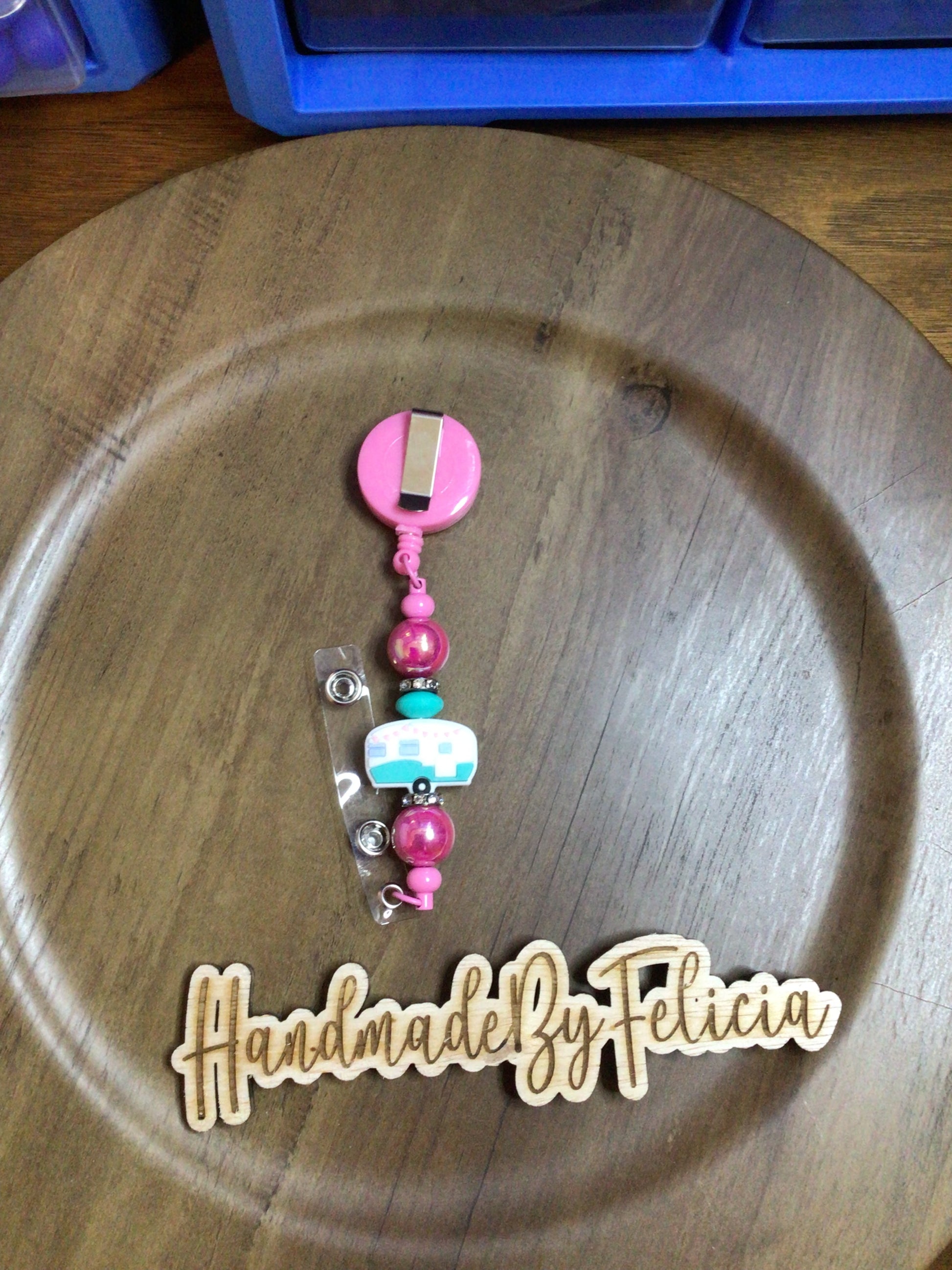 Camper badge reel pink