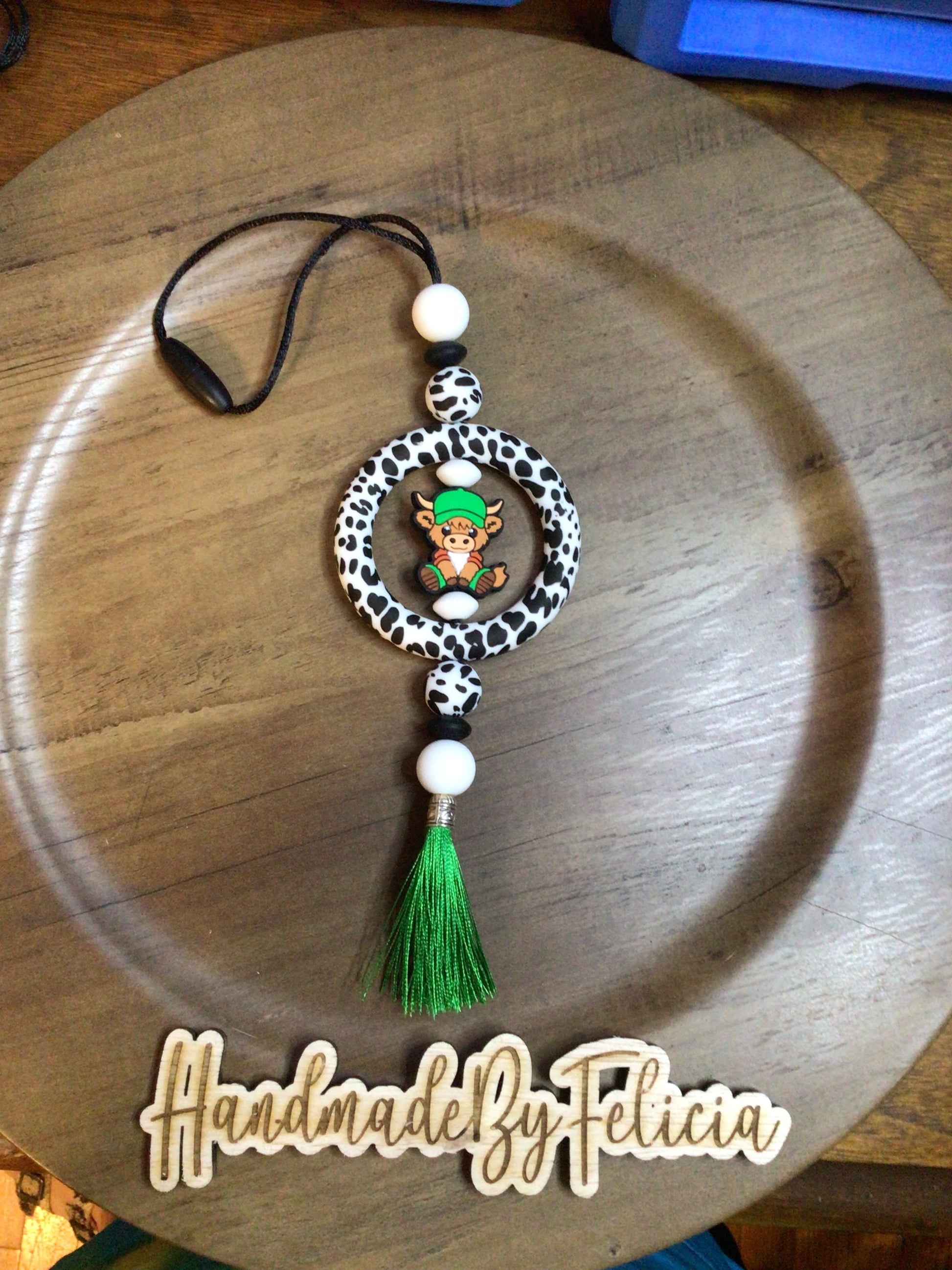 Cow pattern bull cup charm green