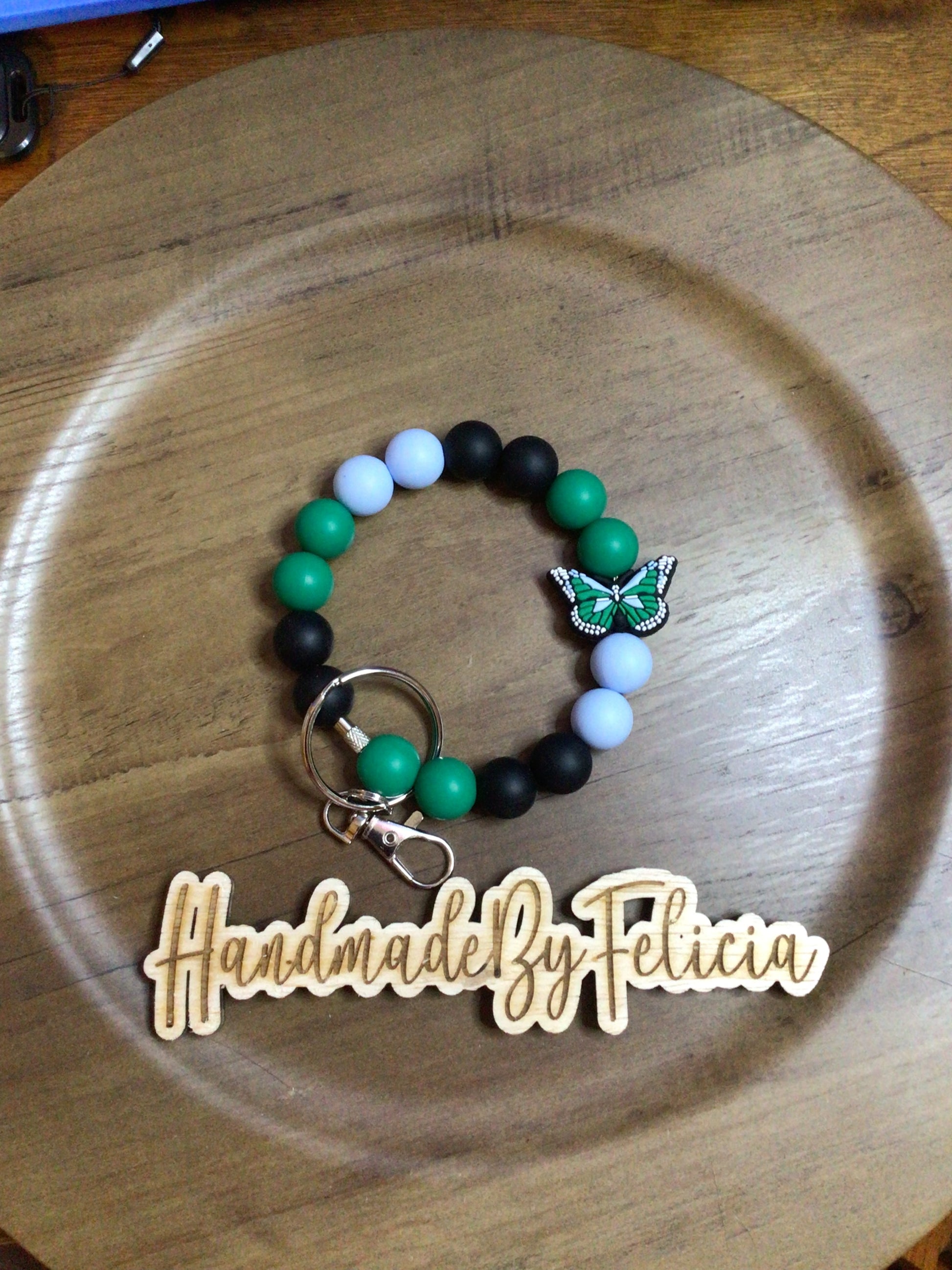 Green butterfly wristlet