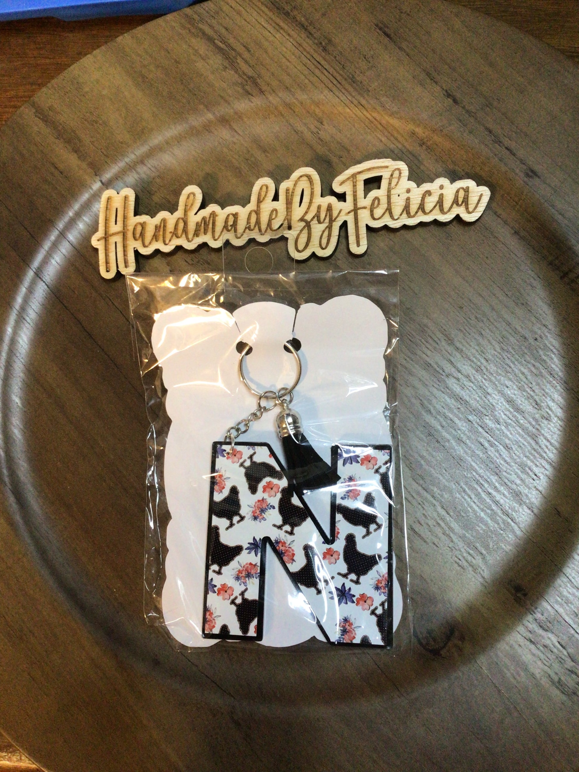 Letter N colored chicken keychain