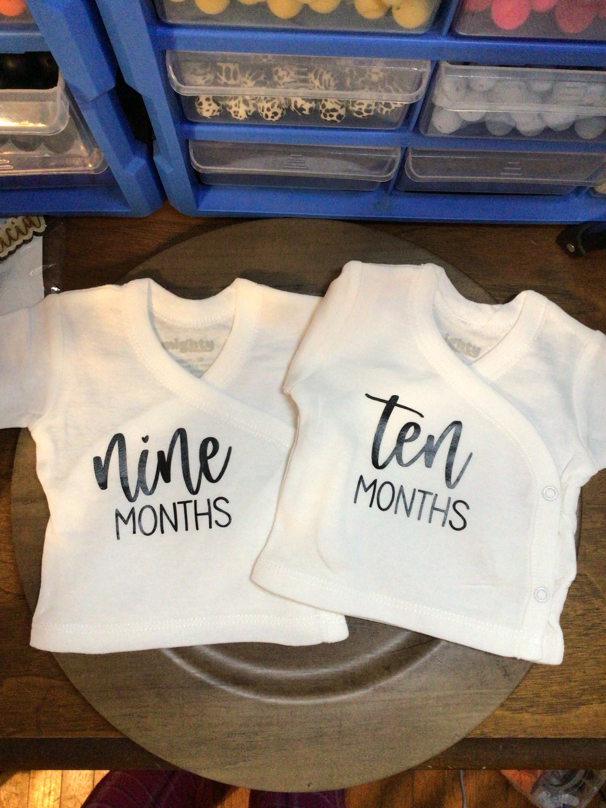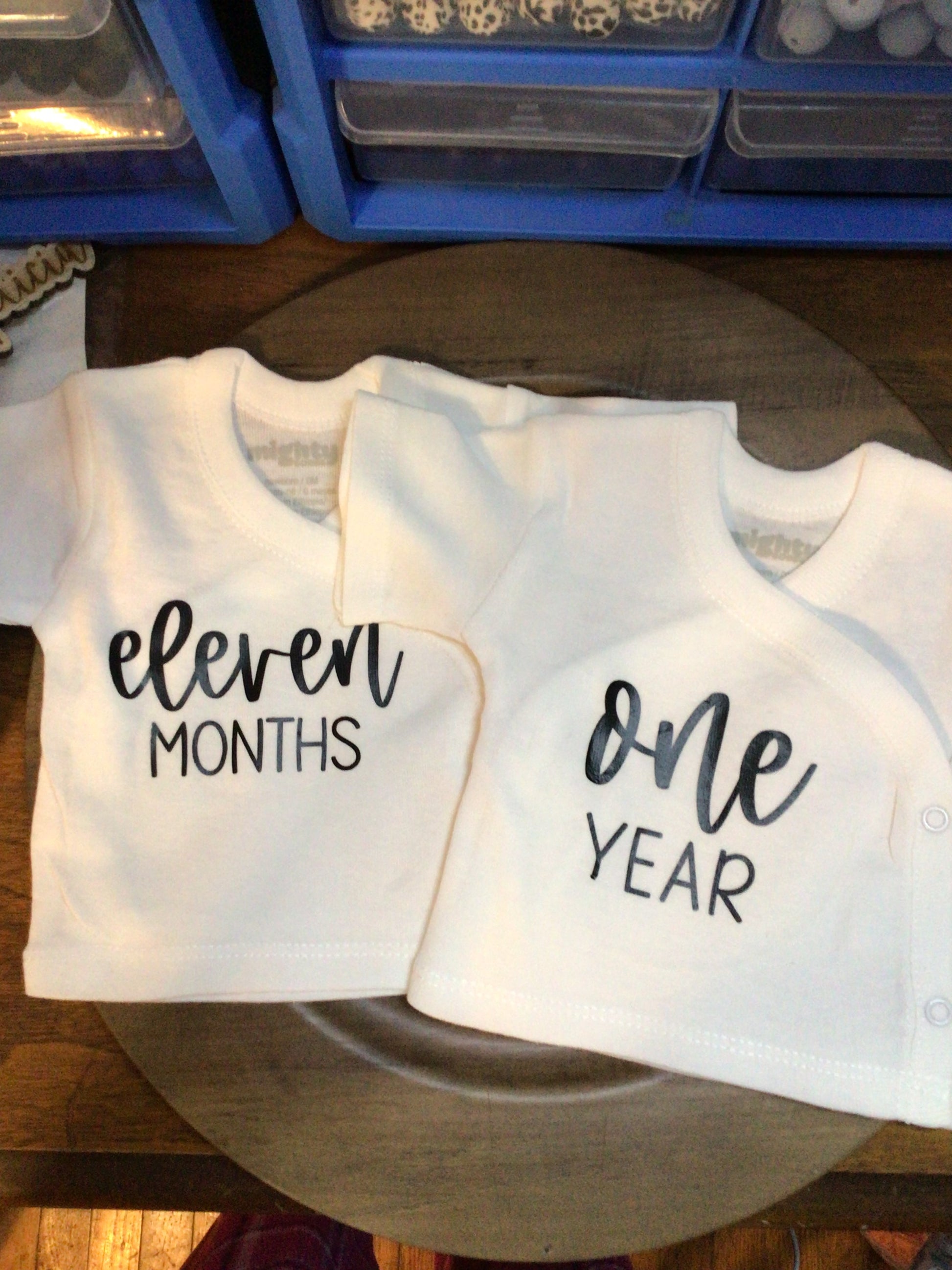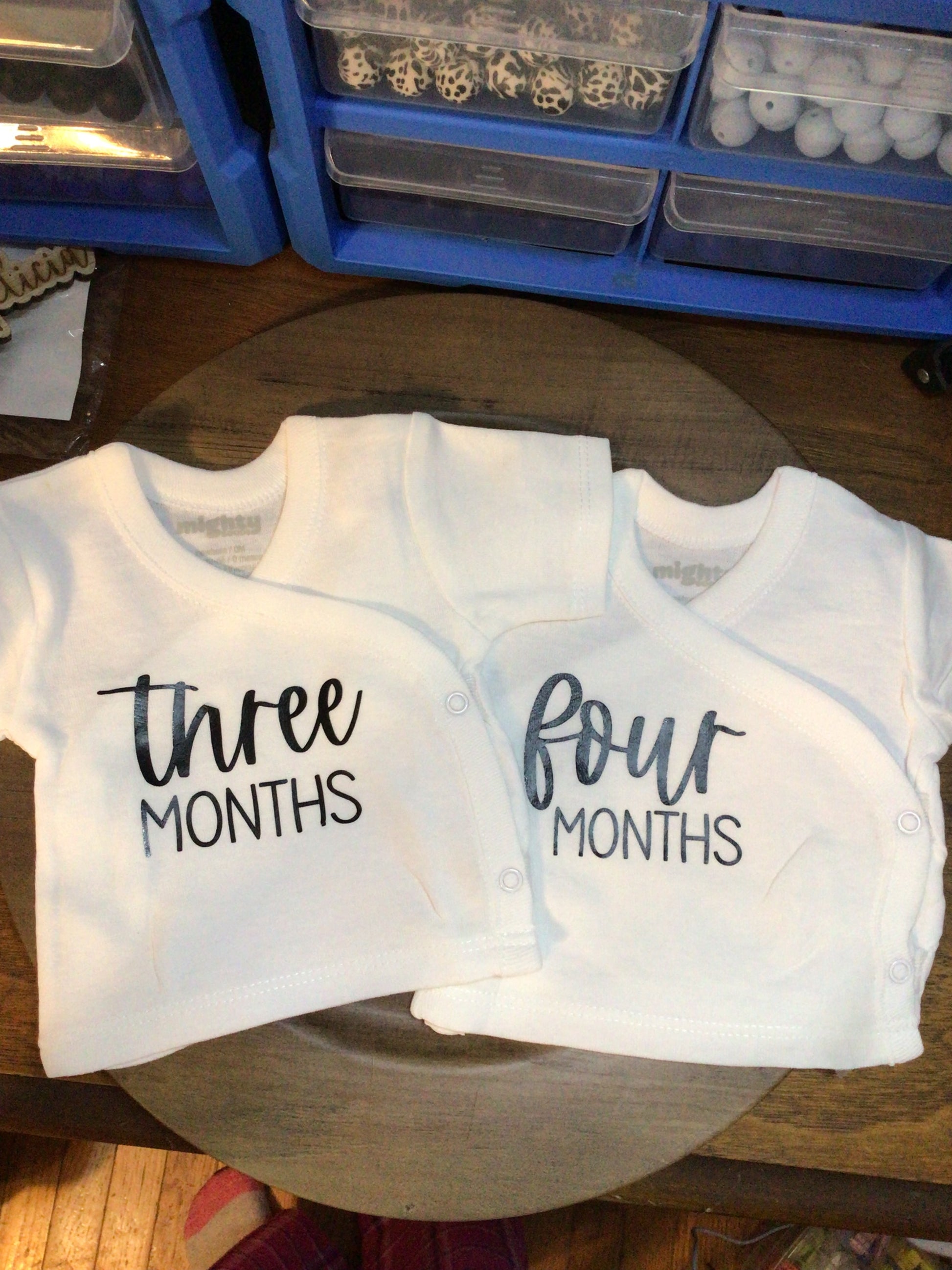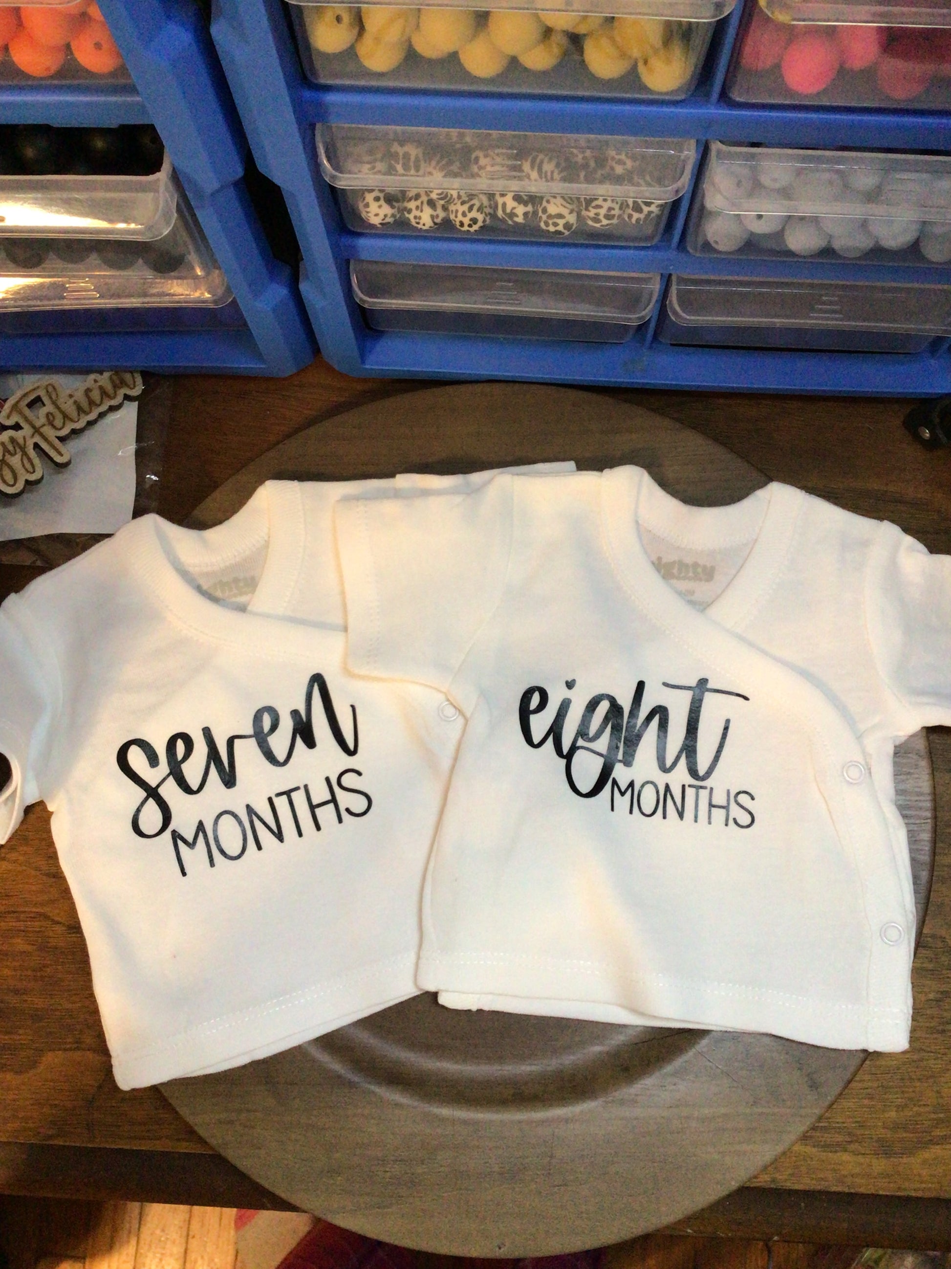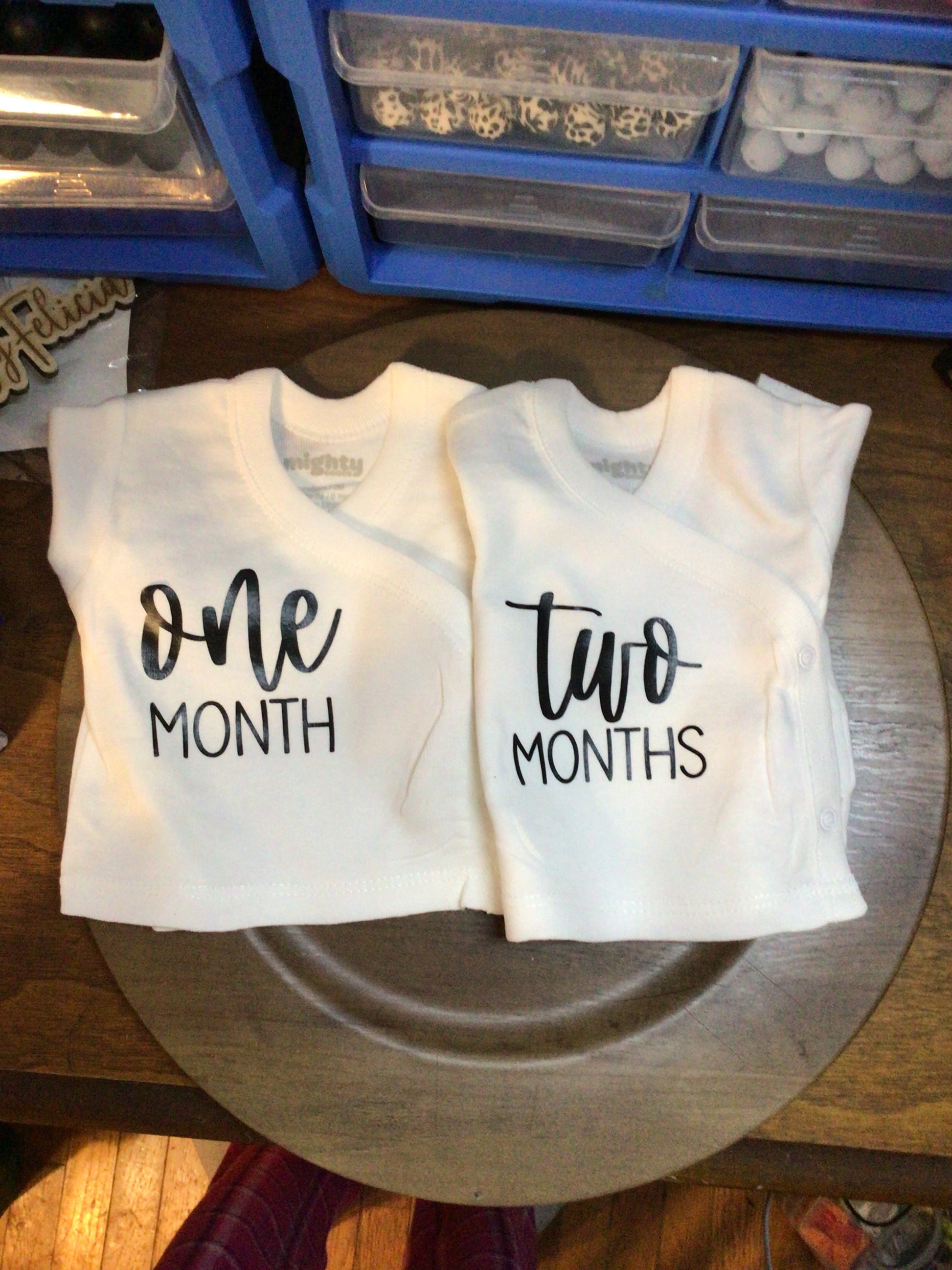 You get 13 monthly milestone shirts with a bear. 5-7;business day turn around as I order the shirts.