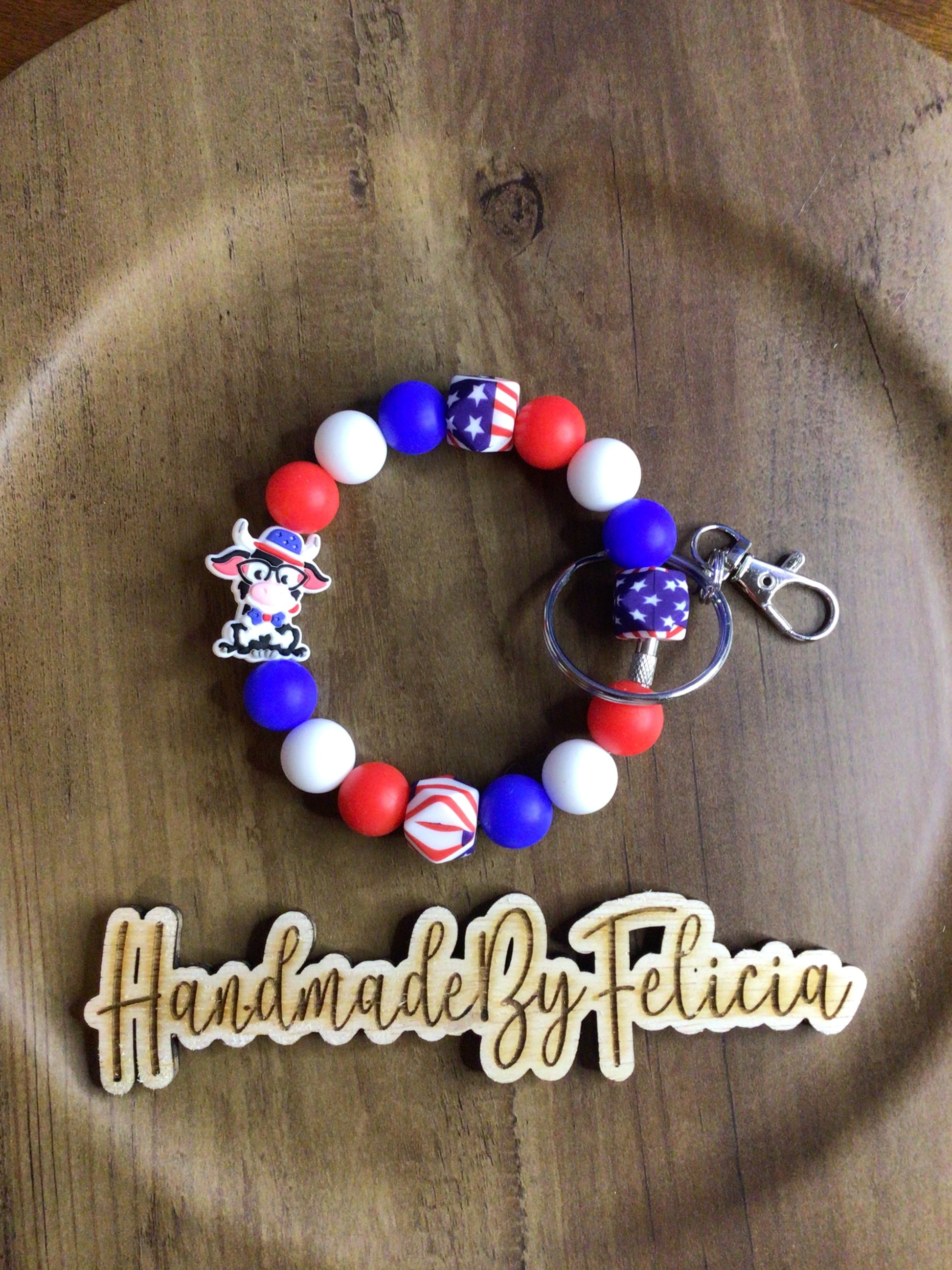 Patriotic smiling cow wristlet