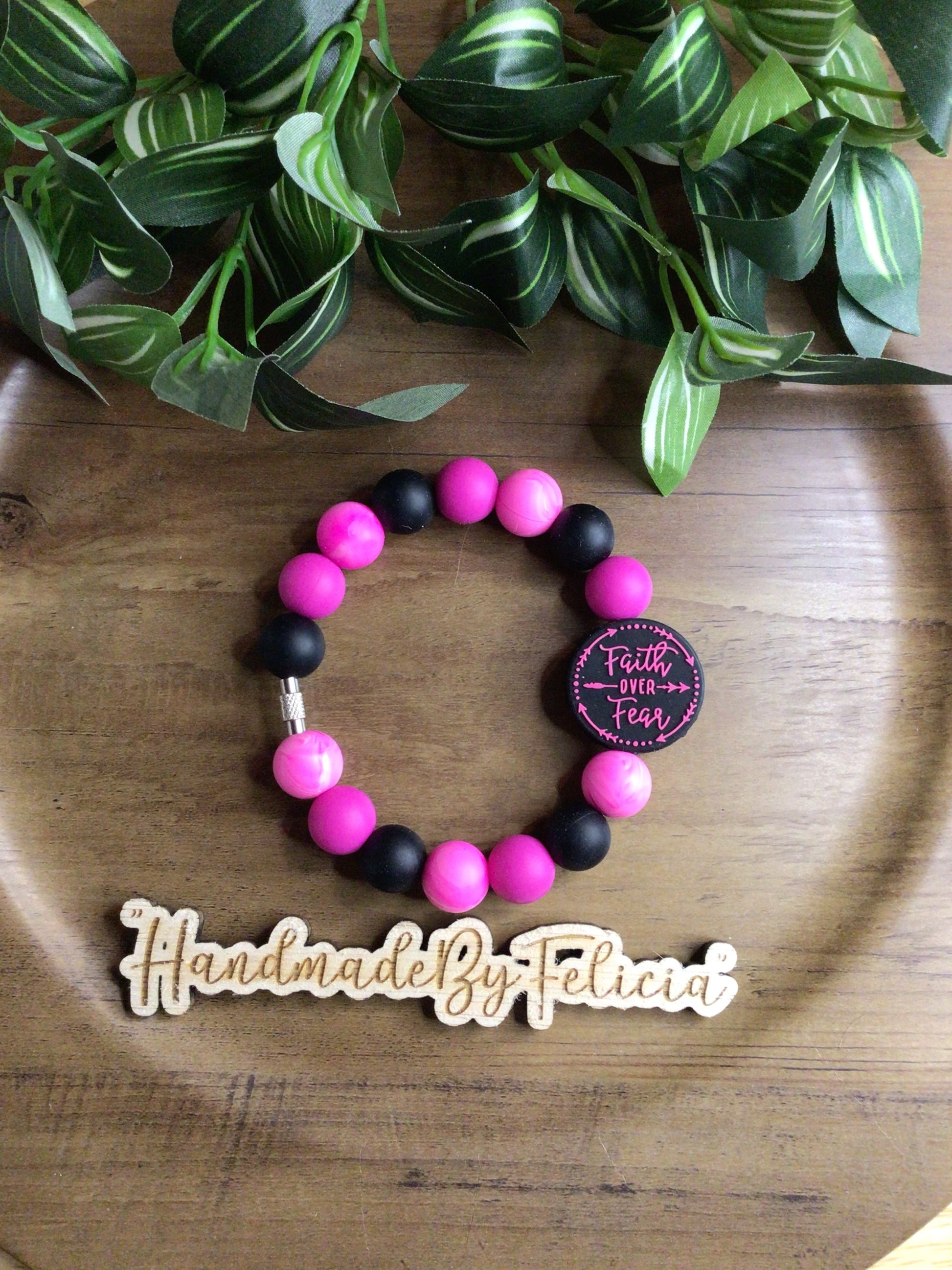 Pink and black Faith over Fear wristlet