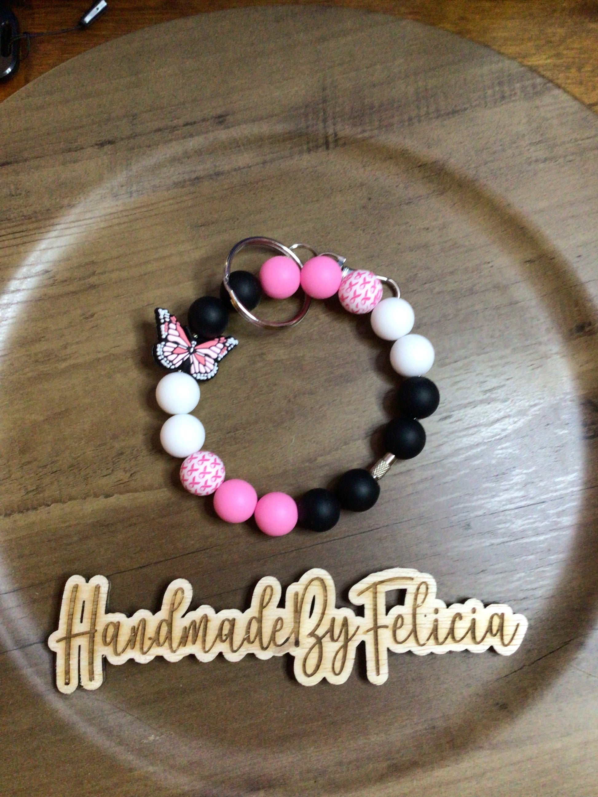 Pink butterfly with cancer ribbon wristlet