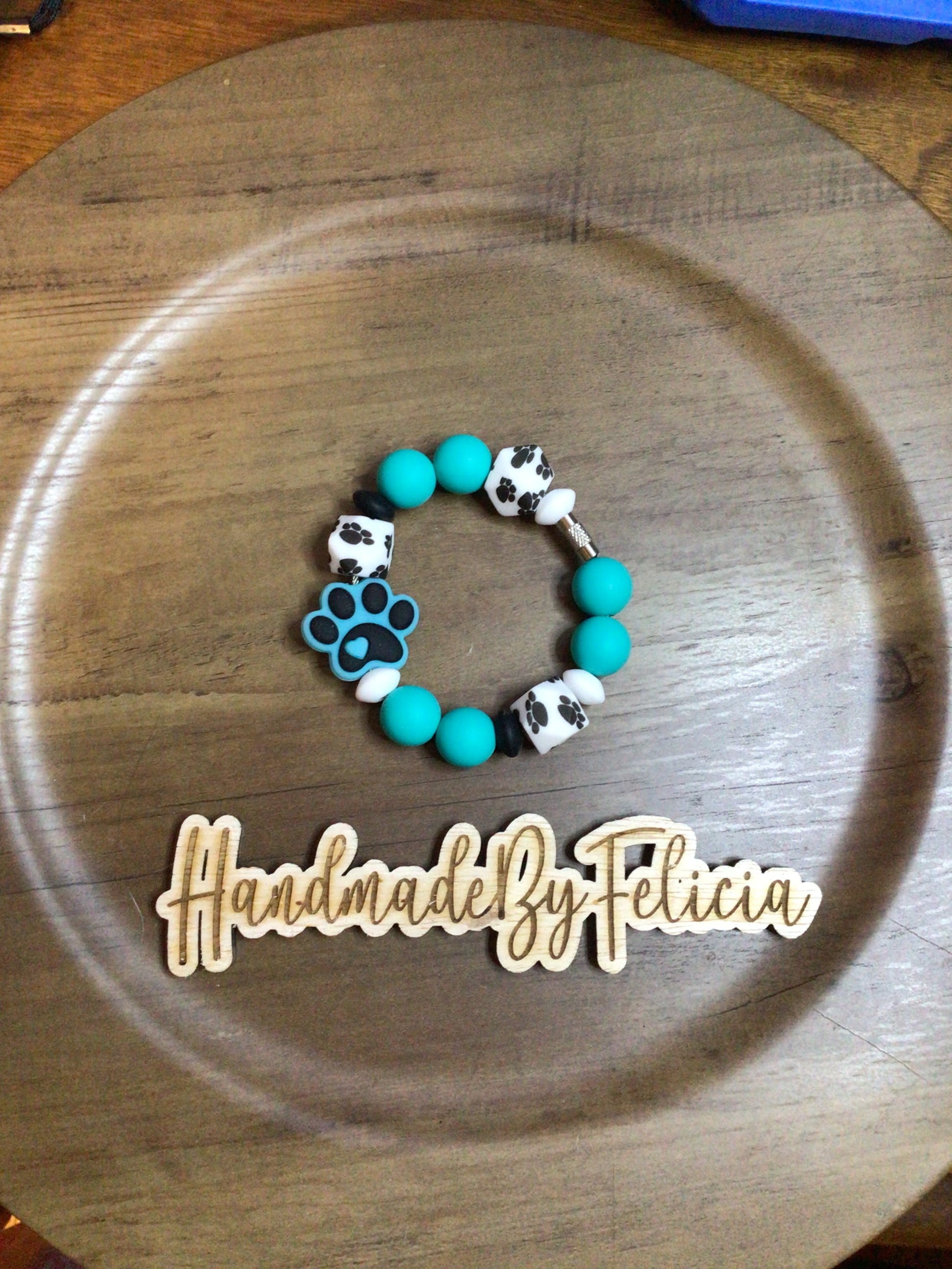 Teal paw cup charm
