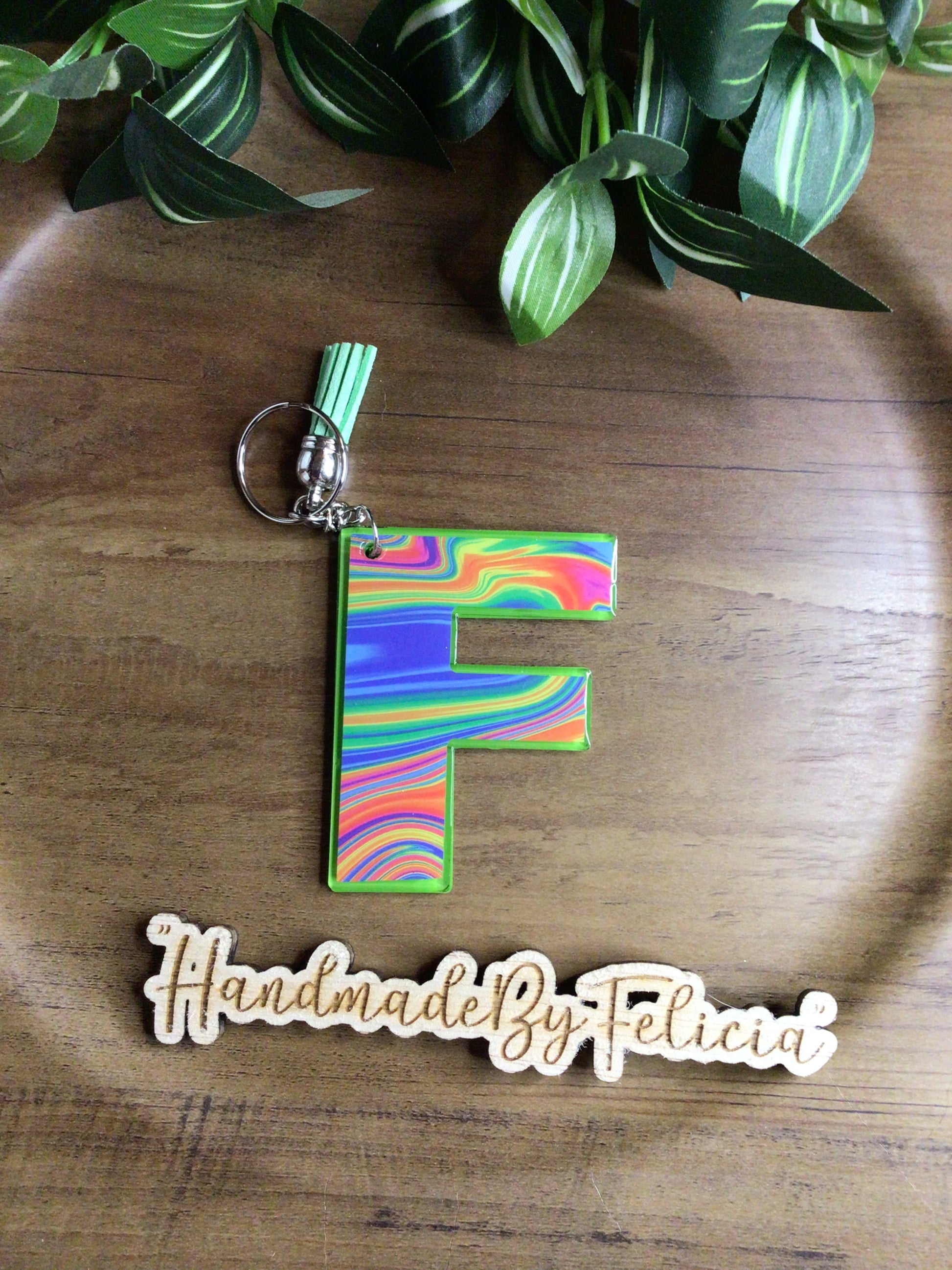 Tie dye initial F acrylic keychain