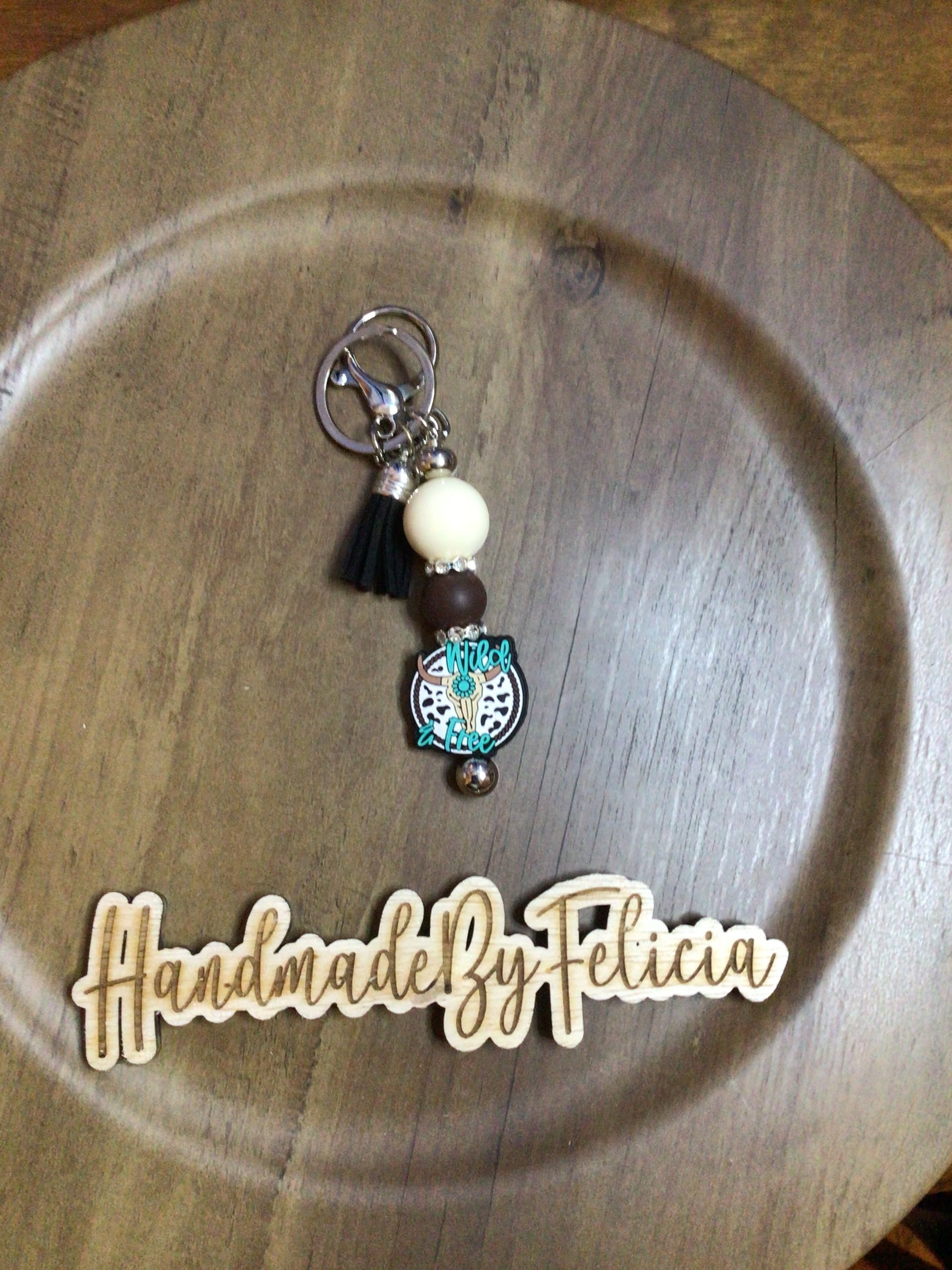 Wild and free bull keychain
